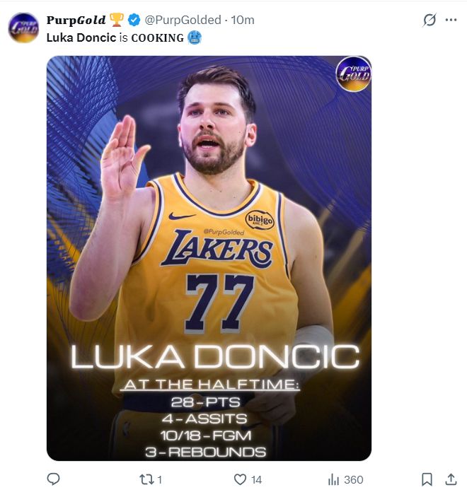 北京时间3月26日,NBA常规赛,湖人以137-130大胜步行者结束六连客。东契奇首节就拿到21分,上半场打完拿到28分,三节打完东契奇已经拿到39分7助攻5篮板4个三分球,全场比赛43分7助攻6篮板1抢断,第二节与末节的得分不够炸裂,东契奇多次露出了灿烂的笑容,湖人6连客5胜1负。