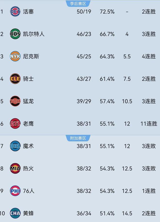 话说老鹰乃进入2026年以来NBA最凶猛的球队之一,近期更是豪取11连胜,本赛季至今战绩为38胜31负排名东部第六,落后第五的猛龙1.5个胜场,但也有可能随时被第七的魔术反超。