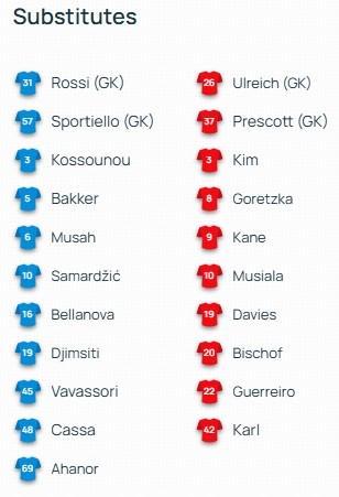 拜仁客战亚特兰大:凯恩替补,雅克松、格纳布里、基米希首发